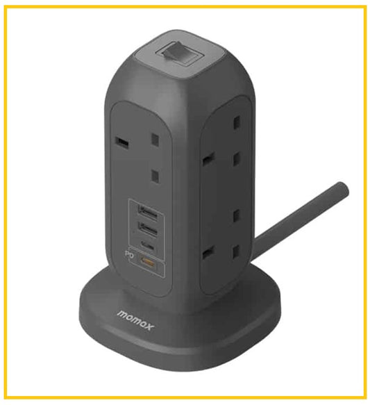 MOMAX 2A2C 6位拖板 1-CHARGE WORK FLOW 6-OUTLET GAN POWER TOWER 35W WITH USB PORTS US21 US21UKW